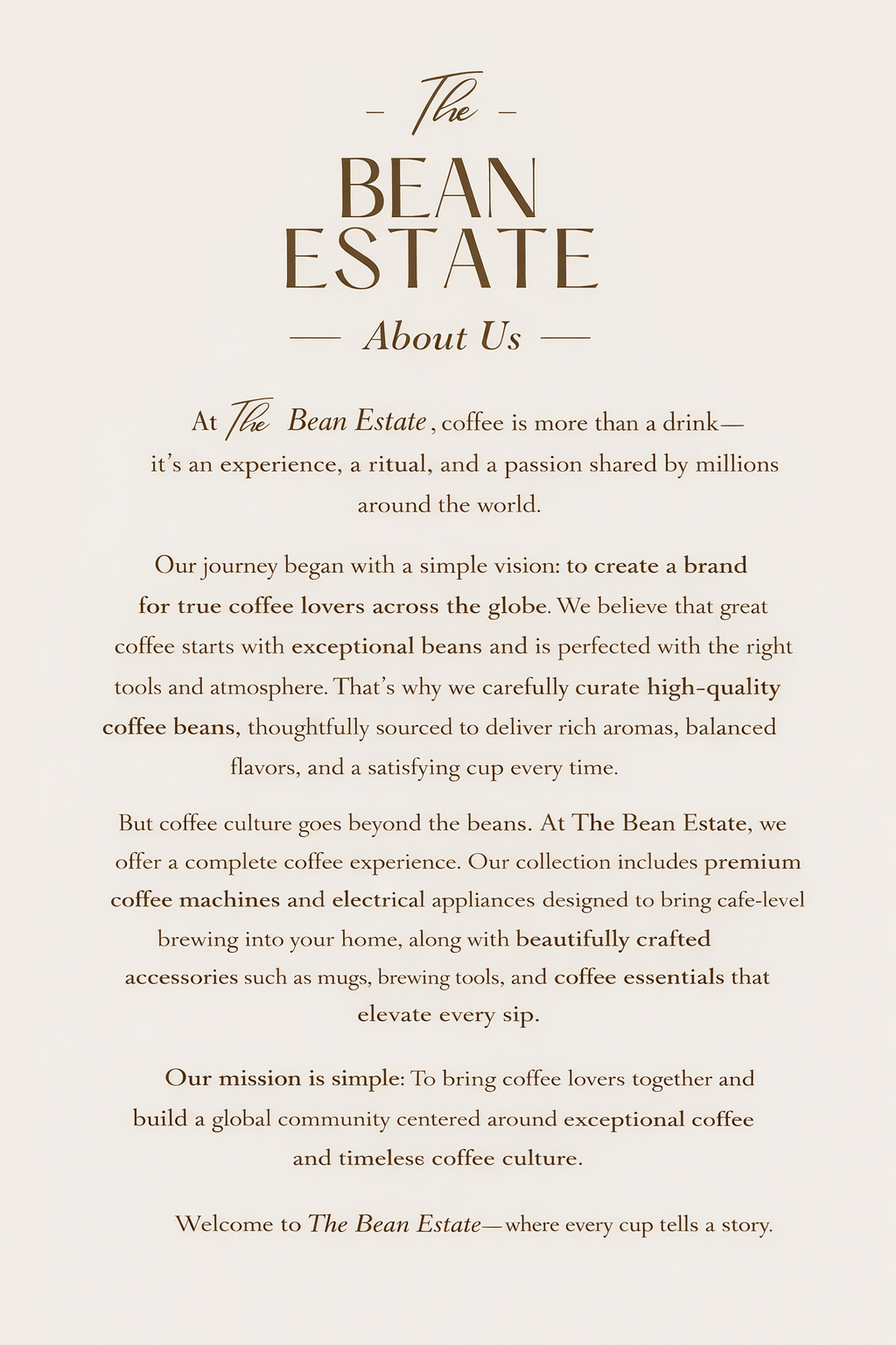 At The Bean Estate, we believe great coffee should arrive at your door conveniently and affordably. That’s why we include shipping at no extra cost, making it easier for coffee lovers to experience premium beans and coffee accessories from the comfort of home.